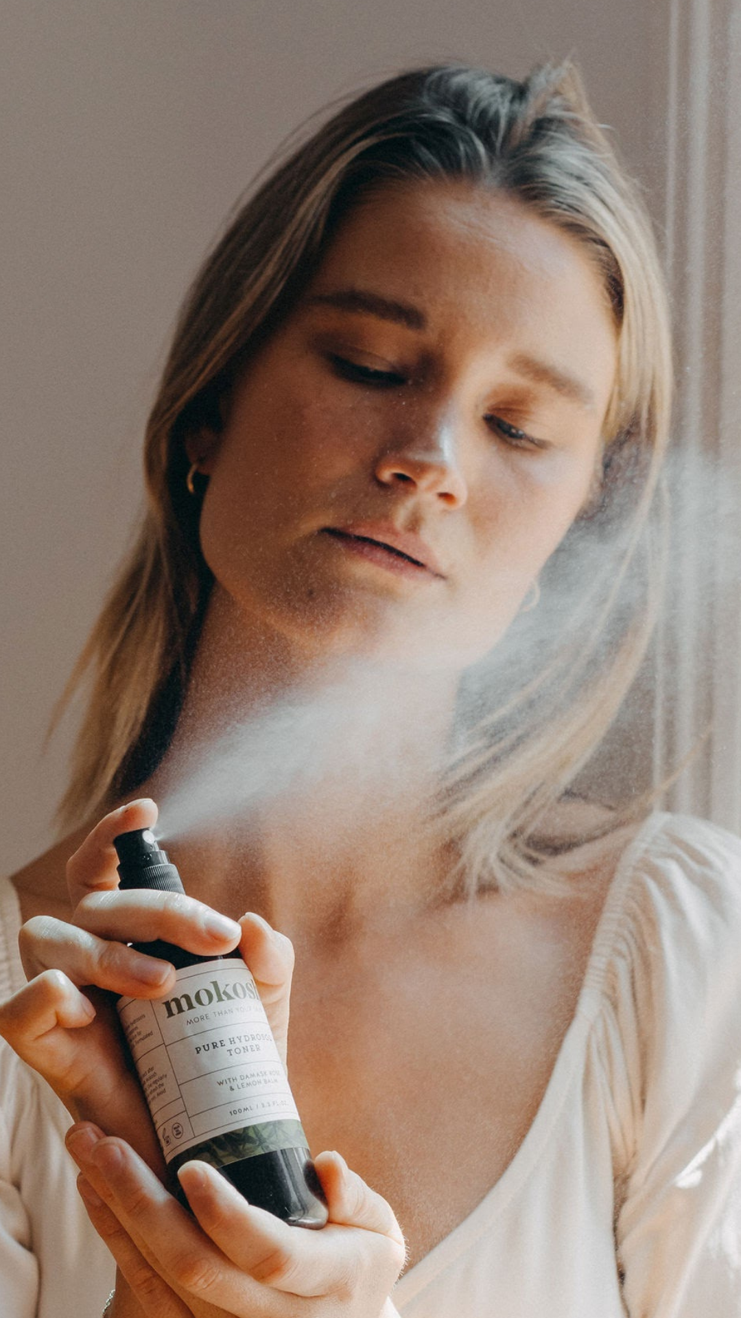 Follow with a mist of our Pure Hydrosol Toner. It will calm the skin while restoring the acid mantle. It makes the ideal aqueous base on which to apply our water-free moisturisers.
